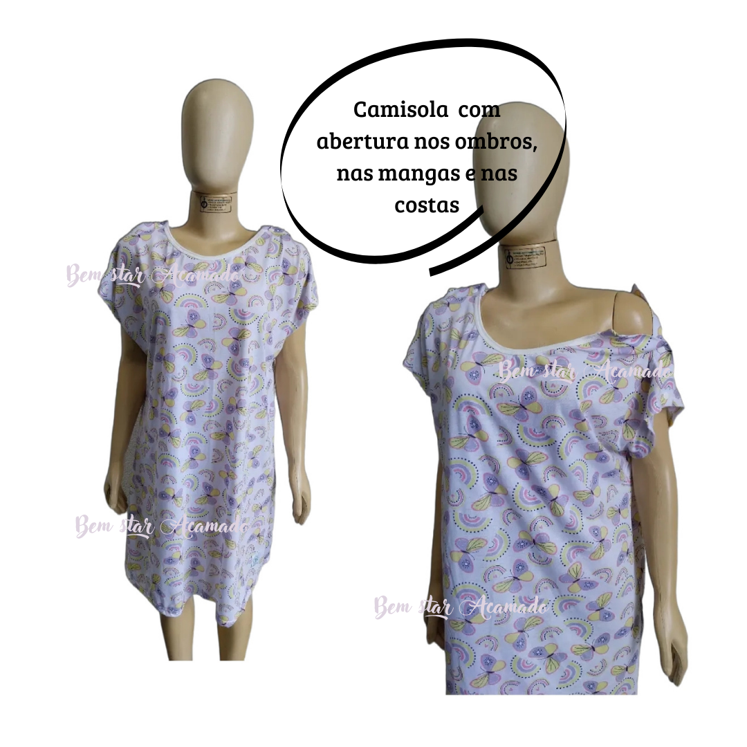 A camisola aberta modelo hospitalar da 3R's Moda adaptada ,foi desenvolvida com um novo design moderno e elegante. Podendo ser usada em duas versões, frente aberta nas costas ou a frente voltada para as costas. Indicada para pessoas acamadas durante sua estada em um ambiente hospitalar, em instituições de longa permanência ou no seu domicílio.